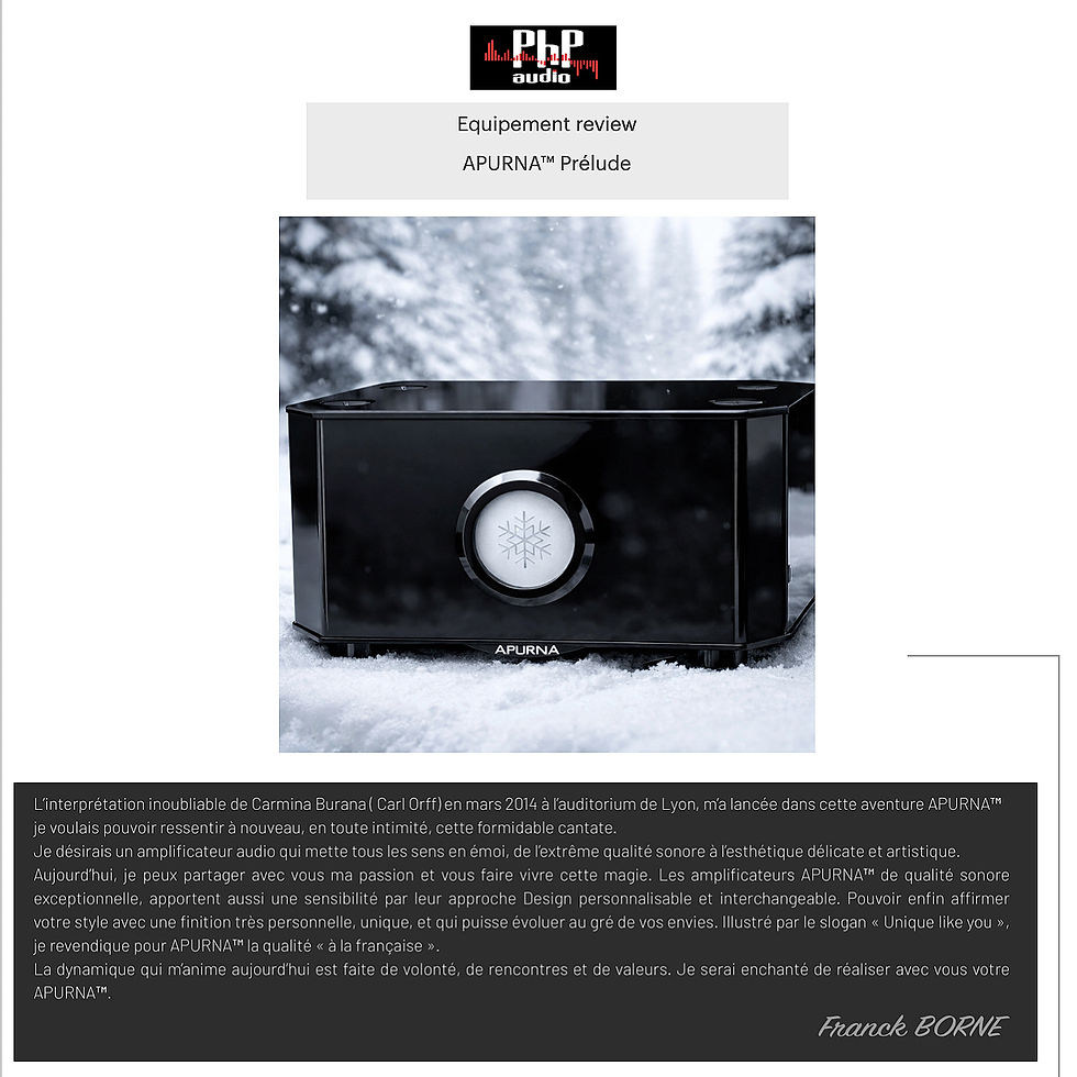 Immersing yourself as closely as possible in the music of Ryūichi Sakamoto is a moment of intense sensations. Alsyvox + Apurna is the cornerstone of this unique realism, other products have come to perfect the result, Taiko + Playback Designs in sources, Pranawire in cables and Reiki Audio components in streaming.